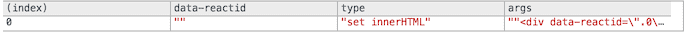 Prints the underlying DOM manipulations, e.g. “set innerHTML” and “remove”.