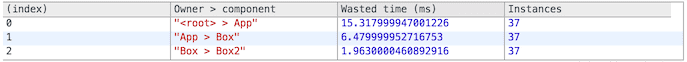 Start/stop the measurement. The React operations in-between are recorded for analyses below. Operations that took an insignificant amount of time are ignored.